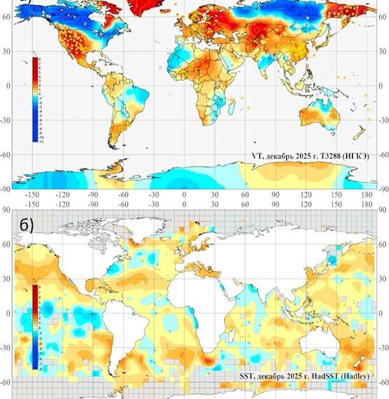 Обзор климатических условий у поверхности Земного шара в ноябре 2025 года (включая Мировой океан)