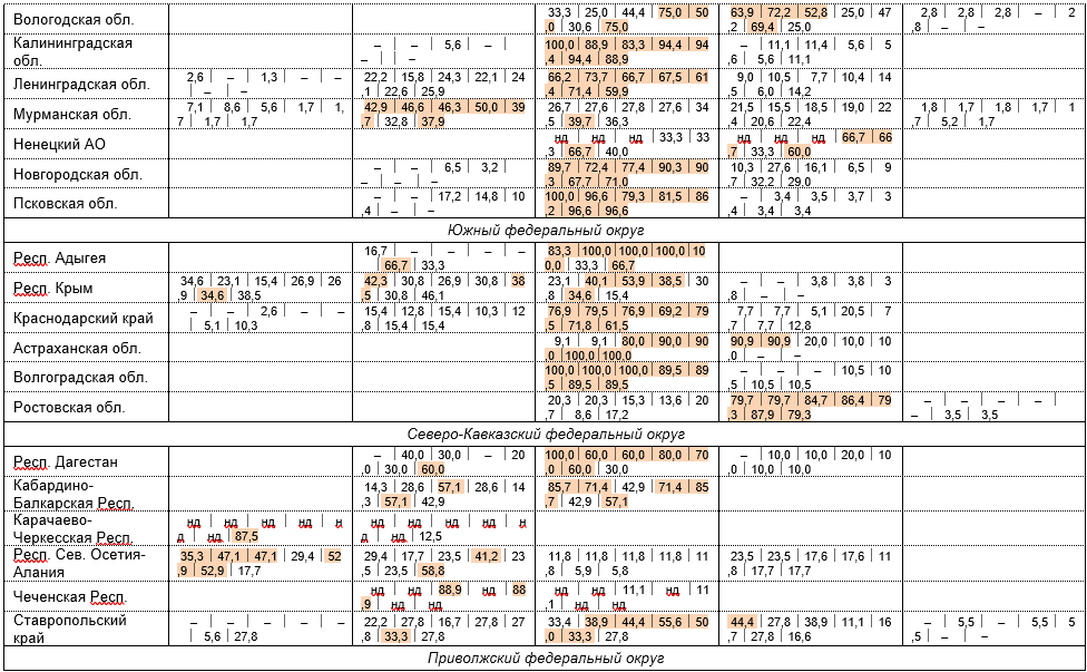 Динамика качества воды водных объектов на территории субъектов Российской Федерации. Цветом выделен преобладающий в регионе класс загрязненности (по УКИЗВ) поверхностных пресных вод.