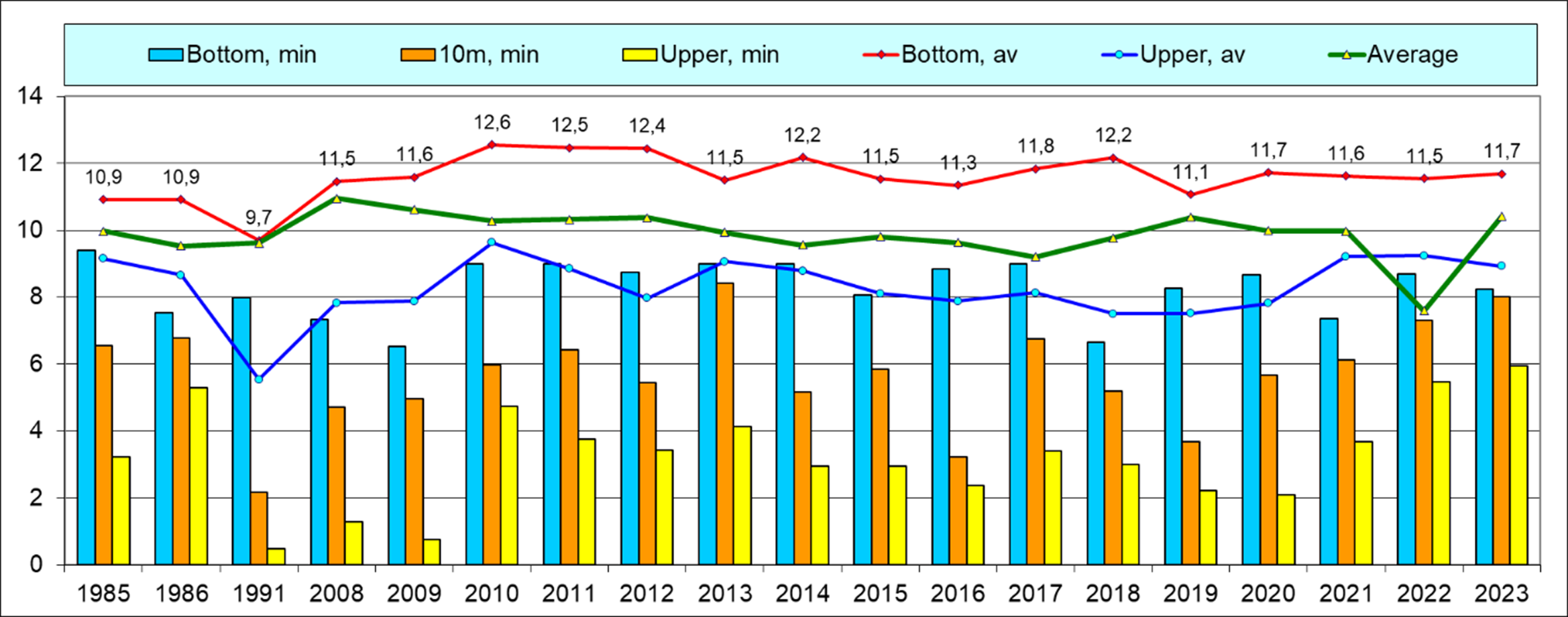 Примечания: Bottom, min – минимальное значение в поверхностном слое;